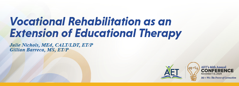 Duration: 85 minutes Vocational Rehabilitation as an Extension of Educational TherapyThe work of a vocational rehabilitation specialist is similar in many ways to the profession of educational therapy, with the age of the client population being one primary distinction. This session will focus on how the two professions overlap in the domain of service delivery and how educational therapists can help develop the skills their adolescent clients will need when they transition to the workforce as adults. State and local Vocational Rehabilitation (VR) departments assist individuals with disabilities in building viable careers and living independently in their communities. Initially, VR is focused on developing “soft skills,” such as communication and social skills, teamwork, attendance, and punctuality. Individuals are also coached on following instructions, remembering routines, time management, and other executive functions. Later in the program, written communication skills are addressed for resume writing and other text-based tasks. During this interactive session, the presenter’s unique experience in both VR and educational therapy will broaden participants’ understanding of the school-to-work obstacles experienced by many of our clients and the interventions that help to overcome those challenges.