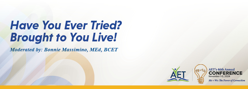 ![]() Duration: 90 minutes 2020 ConferenceHave You Ever Tried?Moderated by: Alberta James, MA, ET/P Additional Facilitators: Lisa Brackin, MS, ET/P; Dr. Mary Beth Burns, ET/P; Angela Hoenshell, MA, ET/P; Nicole Nicholson, EdD; Bonnie Massimino, MEd, BCET and Sean McCormick, MSEd "Have You Ever Tried? Brought to You Live!" is an informal exchange of favorite techniques, best practices, innovative ideas, games, movement activities, and tried-and-true strategies with our conference attendees. Presenters will share a brief five to eight-minute presentation and a one to two-page descriptive handout with a detailed summary of their strategy, activity, or tool. Plan to walk away with an array of ideas ready for immediate implementation during your next virtual or in-person session. Participants will be able to identify a student profile or profiles (strengths and weaknesses) that would benefit from one or more of the strategies/activities/tools discussed by the presenters, explain how the strategy/activity/tool could be adapted for use with that specific student profile during a virtual or in-person session and list the benefits and limitations of three or more of the strategies, activities, or tools discussed by the presenters.